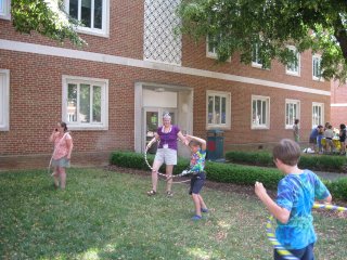 That's right, suusi nauttia SUUSI! That is Finnish for "Your mouth will enjoy SUUSI". Indeed it will, since SUUSI has several beer workshops, wine workshops, and food workshops, in addition to cafeteria food (upper left). Then we need to burn those calories off, with hooping (upper right), or simply walking all over the place on Radford's huge campus (lower right). But stop on occasion to observe Radford's floral arrangements (lower left). You can do all that at Community Time at SUUSI.
