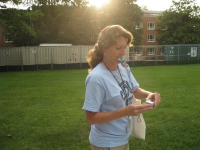 The SUUSI Wanderer came out of the woods, and found himself at SUUSI. He wondered who the slinky dancers were and the fire doves, but in the SUUSI NUUS he did find that there was an Ingathering. A horn (lower right) announced a parade of banners there (upper left), and his group was led by Dianna MacPherson (upper right). He saw David Roth sing his heart out (lower left) , and afterwards he went to the opening circle, where he saw all of the other SUUSI Wanderers (lower right). And yet, there was no trace of La Bamba. Where was it?
