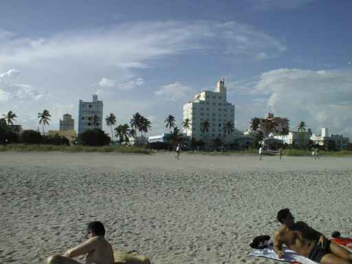 City Hall, have a definite style to them and are painted in unusual and pastel colors associated with the old TV show "Miami Vice". In the afternoon we went sunning and swimming on the beach as I watched the clouds billow up into a fierce